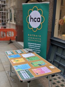 Declan was there from 11am- 1.30pm, talking to a total of 14 students about the impact Holborn Community Association makes in the local community. Students expressed interest in the range of activities HCA offer, especially the positive impact this has on the community, such as, inclusivity with embracing diversity and having low cost/free sessions; reduced isolation/loneliness in older people and helping to improve mental/physical well-being with movement sessions.