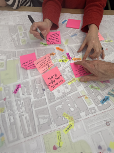 The most recent workshop was in the Holborn Library on Theobalds Road. Local residents attended, talking about their memories and stories around Theobalds Road. Participants talked about what stood out and what they loved. They then went on a walk around the local area, discussing what they would change and what they like. Discussions centred on road safety, traffic, resident access, changing businesses and buildings. Residents shared their opinions on what they would like Holborn to look like in the future.
